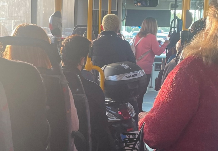 Ο συγκεκριμένος λοιπόν μπαίνοντας το πρωί, περίπου στις 8:30 όπως αναφέρει στα σχόλια, αντίκρυσε μέσα ένα μηχανάκι. Ναι, ένα μηχανάκι μέσα στο λεωφορείο, το οποίο και φωτογράφισε κιόλας.