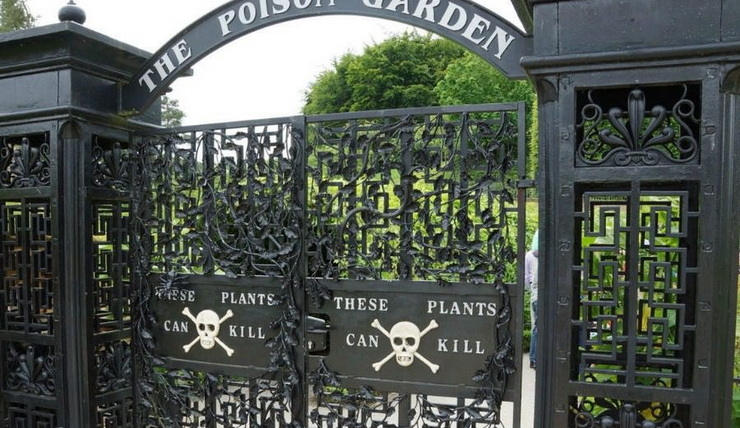 Εμπνευσμένη από τους μηχανικούς βοτανικούς κήπους στην Πάντοβα, μια Αγγλίδα δούκισσα δημιούργησε έναν κήπο εξ ολοκλήρου από δηλητηριώδη φυτά στο Κάστρο Alnwick. Πίσω από τις μαύρες πόρτες, αυτός ο προσεκτικά επιμελημένος κήπος περιέχει περίπου 100 θρυλικά φυτά δολοφόνους. To «Poison Garden» άνοιξε το 2005 για το κοινό και είναι ακόμα