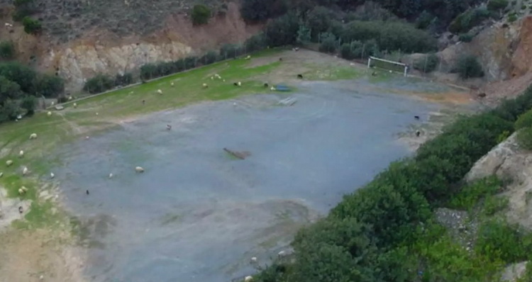 Ένα γήπεδο σκέτη απόλαυση στην ορεινή Κρήτη για τα πρόβατα που πάτησαν και έφαγαν το γρασίδι του. Το εμφανώς εγκαταλελειμμένο και αποψιλωμένο από τα αμνοερίφια γήπεδο, έχει μετατραπεί σε ένα πρώτης τάξεως «μεζεδοπωλείο» για τα συμπαθή τετράποδα. Σύμφωνα με όσα ανέφερε στο cretapost o δημιουργός του βίντεο και εικονολήπτης, Νίκος