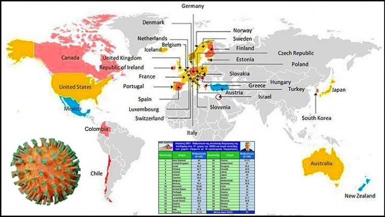 Συγκρίνοντας 10 παραμέτρους της πανδημίας που επηρεάζουν τη δημόσια υγεία, έγινε κατάταξη των 37 χωρών του Οργανισμού Οικονομικής Συνεργασίας και Ανάπτυξης (ΟΟΣΑ), όσον αφορά τη συνολική διαχείριση της πανδημίας στο χρονικό διάστημα 1-30 Απριλίου 2021. Στην παρούσα μελέτη γίνεται μία προσπάθεια βαθμολογίας της συνολικής διαχείρισης της πανδημίας στις χώρες του